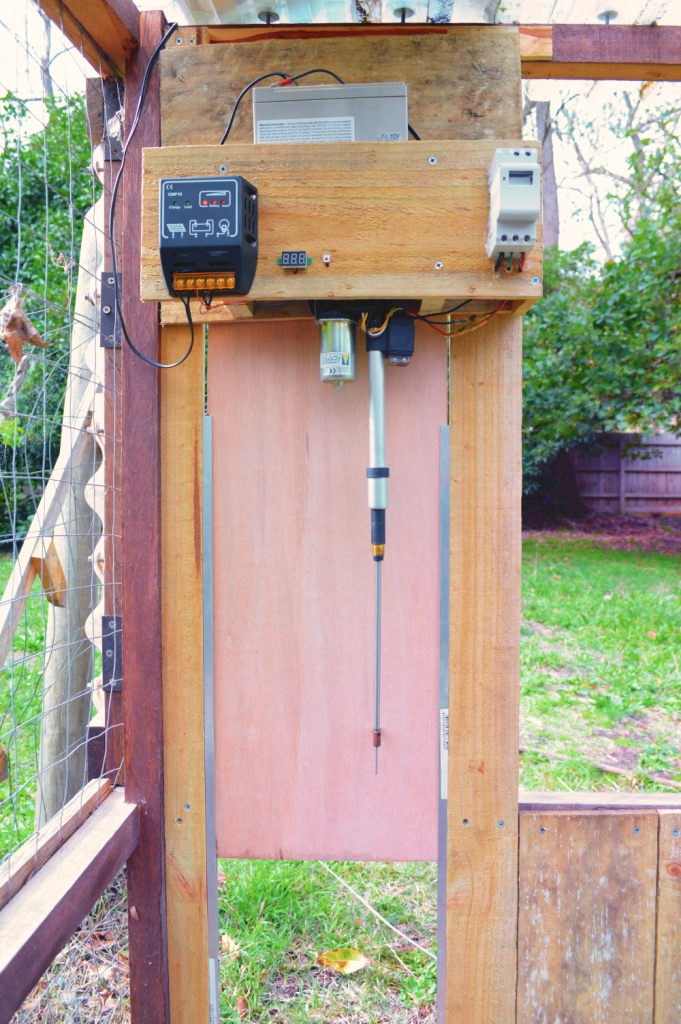 Even though this automatic chicken coop door opener does not come with a door it is mains power enabled and comes with all the fittings for an exiting door.